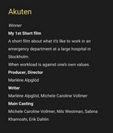 | Cut to Black | Skådespelare | Award host | Medieinstitutet | 2025 |