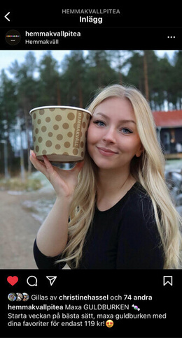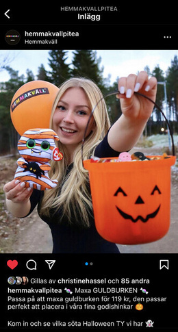 | Hemmakväll instagram reklam | Modell | Modell för godis | Hemmakväll AB | 2023 |